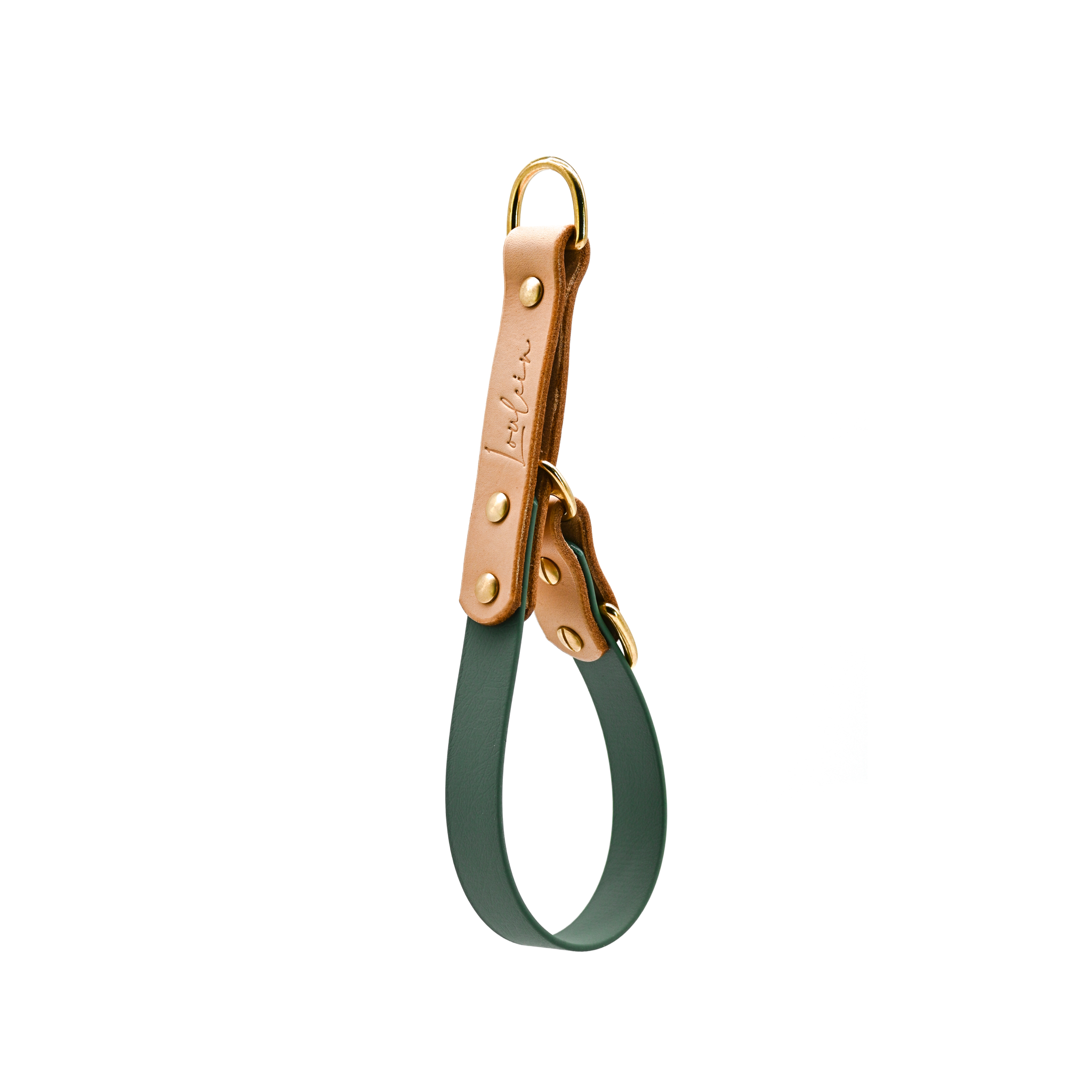 „KEKOH“ – das Everyday-Zugstopp-Halsband von Loulein. Ein leichtes Halsband aus Biothane und Leder. Praktisch und schick.